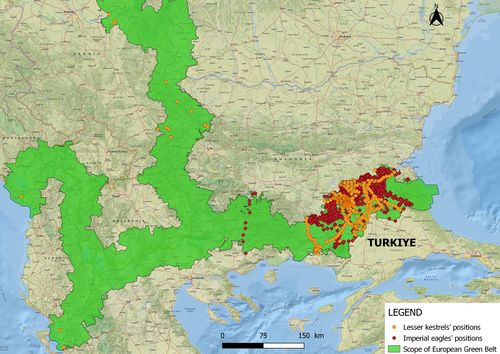 Data from all transmitters shows that 8,000 sq. km of the Balkan Green Belt's total coverage area of 11,000 sq. km in the two neighbouring countries is inhabited by tracked Imperial Eagles and Lesser Kestrels. This strongly underlines the need to protect this habitat for these two emblematic species.